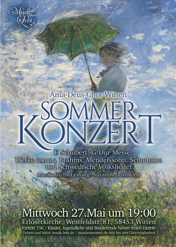 Der Ama-Deus-Chor besteht bereits seit 2003! Die Opern- und Konzertsängerin Susanna Andersson-Dornwald rief ihn zusammen mit einigen Schülereltern der Rudolf-Steiner-Schule ins Leben. Mittlerweile zählt der Chor rund fünfzig Mitglieder – Frauen und Männer mit vielen Berufen und jeden Alters aus Witten und Umgebung. Von allem Anfang an war es ein großes Anliegen, Kinder und Jugendliche in die Chorgemeinschaft zu integrieren. Junge Menschen nehmen so aktiv am kulturellen und sozialen Leben teil. Sie schulen neben ihren musikalischen Fähigkeiten ihre Willenskräfte und sozialen Kompetenzen, indem sie sich mit Ausdauer etwas Übergeordnetem zur Verfügung stellen. Zudem erleben sie das gemeinsame Bestreben von Berufsmusikern, namhaften Solisten und dem gesamten Chor nach qualitativ hochstehenden Aufführungen großer Werke.